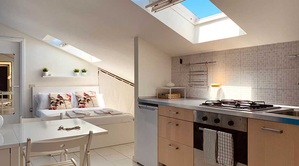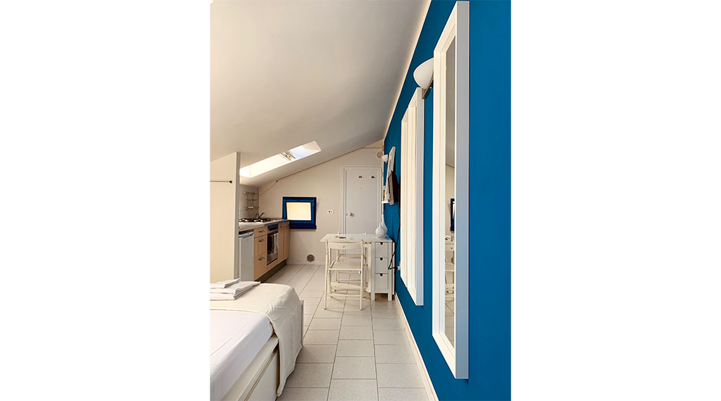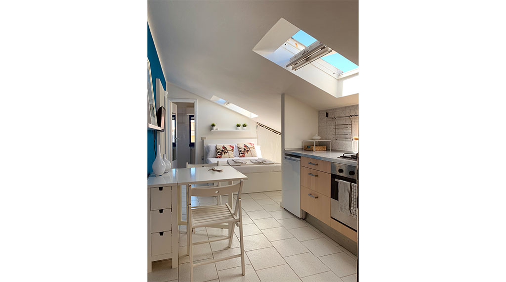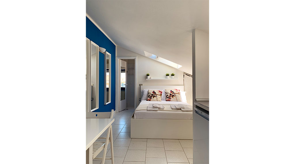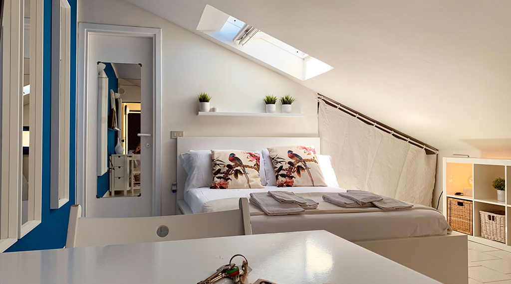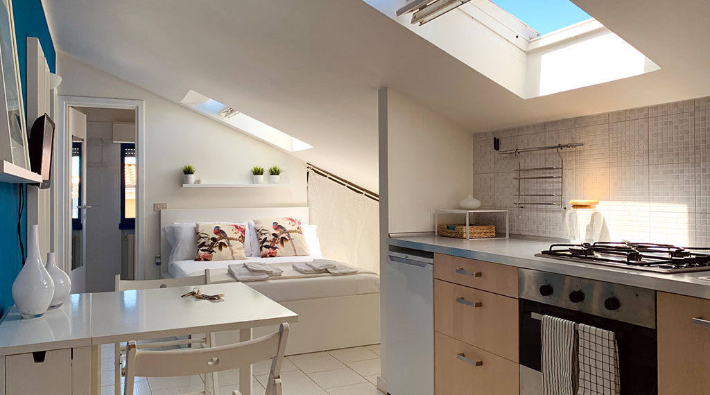 Tramontana è un piccolo rifugio sul mare, affacciato su spiagge sia libere che in concessione, ideale per due persone. A pochi passi dal centro città, raggiungibile con due biciclette a disposizione, si trova questa piccola mansarda, ristrutturata in stile minimal, che non si fa mancare niente. L’appartamento è composto da una cucina completa di forno, tavolo da pranzo, un letto francese e dispone di wifi, televisore e condizionatore. Conclude la proprietà un locale lavanderia al piano terra, molto comodo anche per posizionare le biciclette.